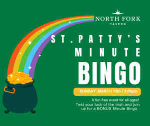 Join us Sunday, March 15 for a BONUS St. Patty’s Day Minute Bingo!