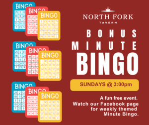 Bonus Minute Bingo EVERY SUNDAY @ 3:00pm. Check our facebook page for the weekly themes. Free event for the whole crew. Make Sundays FUNDAY with us!
